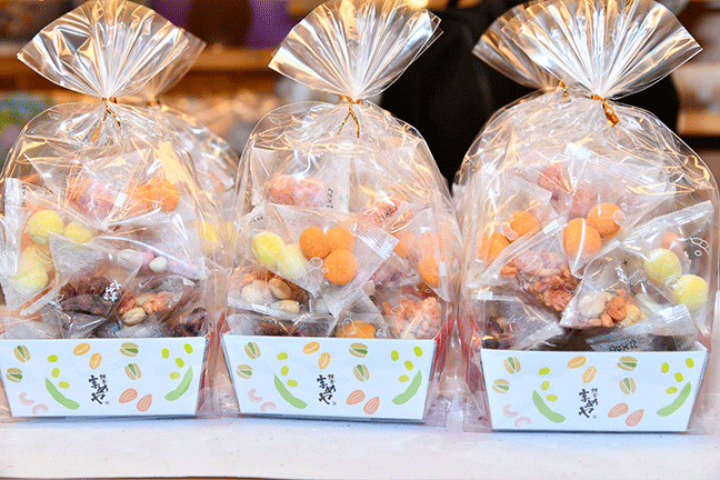 甘い系からしょっぱい系まで種類豊富な豆菓子。